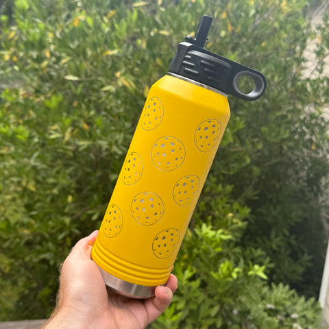 Quench your thirst in style with our full wrap pickleball water bottle! Made of durable stainless steel, this bottle keeps your drink cold while you dominate on the courts. Plus, its eye-catching design is sure to turn heads and score compliments. #letsgo